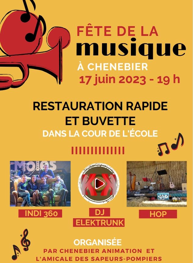 L'Association Chenebier Animation et l'Amicale des Sapeurs Pompiers, organisent leur traditionnelle fête de la Musique, le 17 JUIN 2023 - à 19h